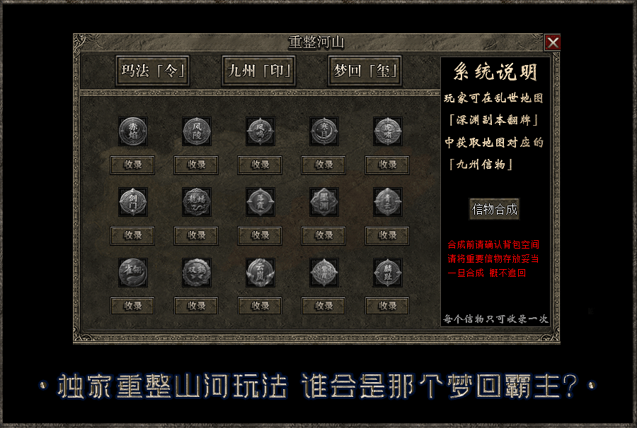 - 【梦回沉默】:每日开放三个新区,第三天下午三点合区拿沙,激情战沙城